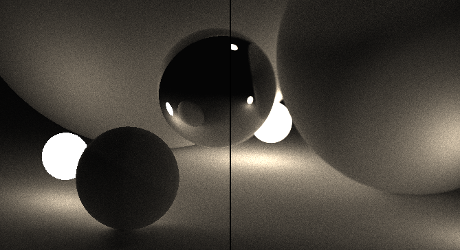 - a new ray is fired in a direction that is a linear interpolation of the specular direction and the diffuse direction based on the smoothness of the object which expresses whether the object is mirror-smooth or matte